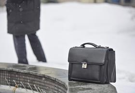 Рассмотрение апелляционной жалобы на решение Лефортовского суда Москвы о продлении ареста советнику главы "Роскосмоса" по информационной политике, бывшему журналисту газеты "Коммерсантъ" Ивану Сафронову, обвиняемому в государственной измене, в Московском городском суде. Жанровая фотография. Портфель на бортике фонтана.