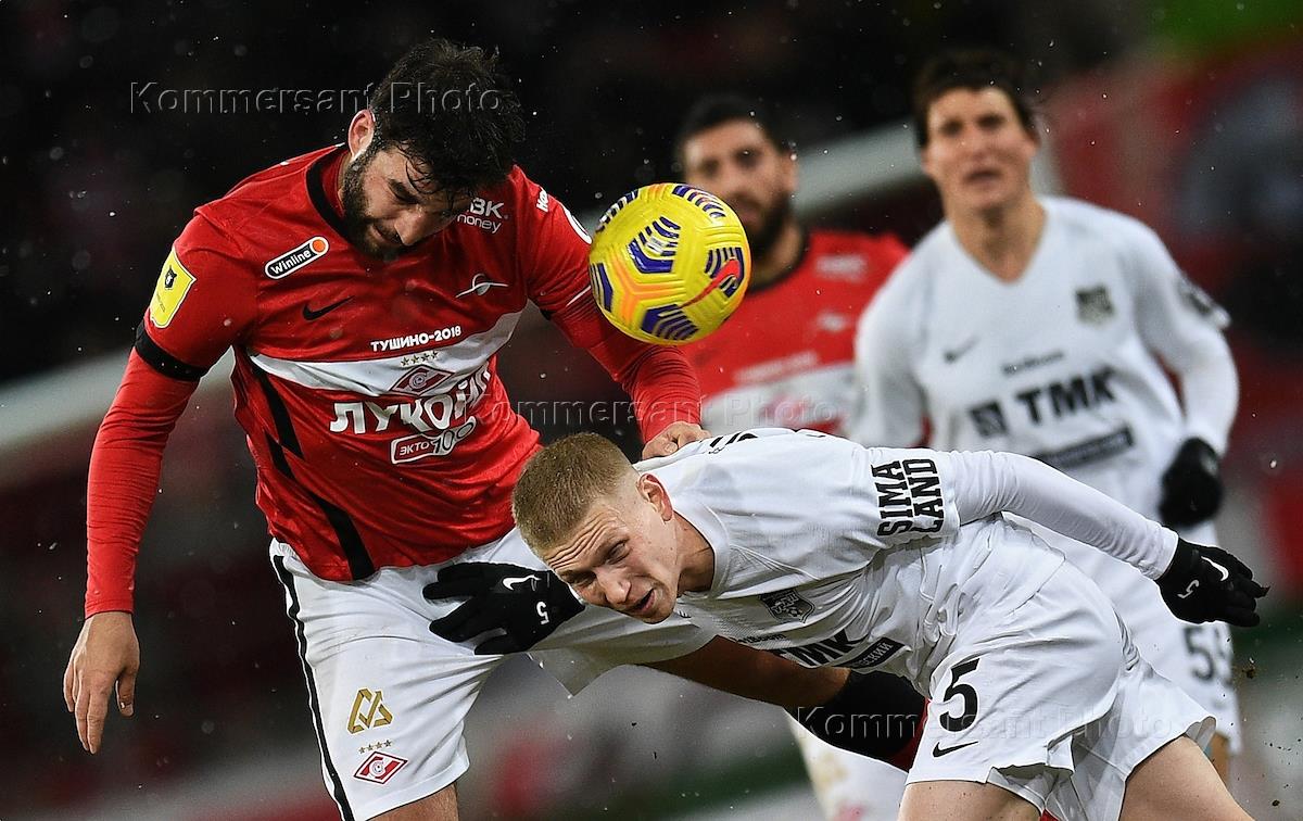 Российская Премьер-Лига (РПЛ). Тинькофф - Чемпионат России по футболу 2020/2021. 23-й тур. Матч между командами "Спартак" (Москва) - "Урал" (Екатеринбург) на стадионе "Открытие Арена". Игрок команды "Спартак" Павел Маслов (справа) во время матча.