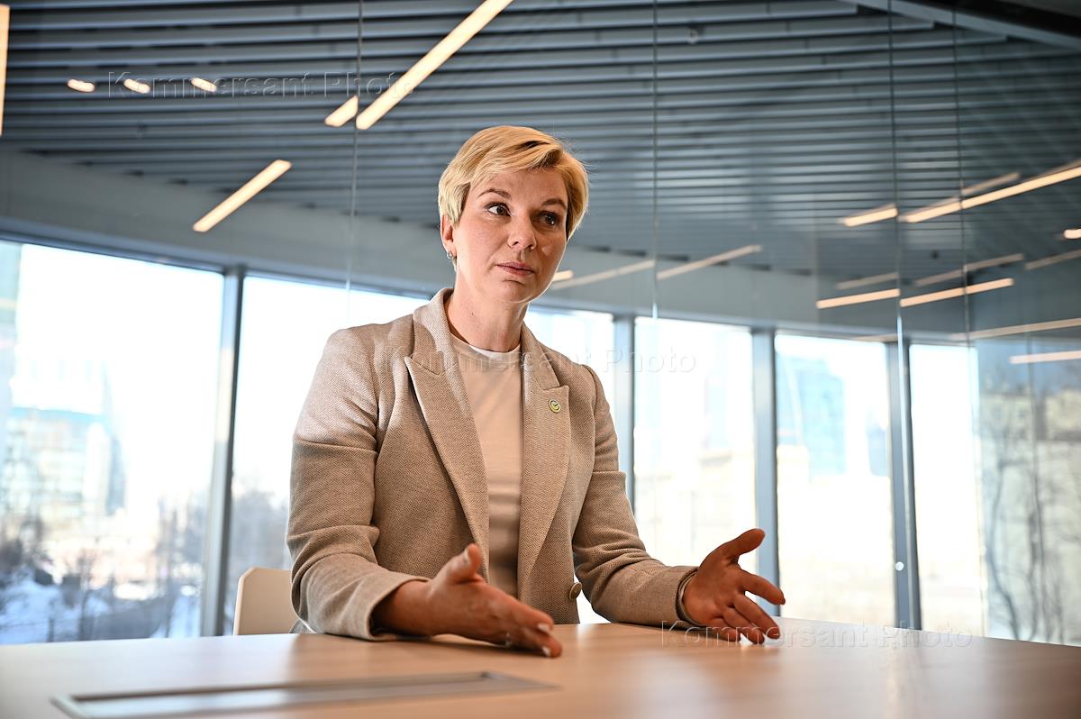Член правления, старший вице-президент-руководитель блока "Управление благосостоянием" ПАО Сбербанк Наталья Алымова во время интервью.