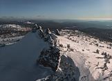 Жанровая фотография. Виды горнолыжного курорта Шерегеш. Скала "Верблюд". "Верблюды" - это скалы-останцы на склоне горы Курган в Шерегеше. Являются остатками выхода магмы на земную поверхность, разрушенными воздействием дождя, ветра и мороза.