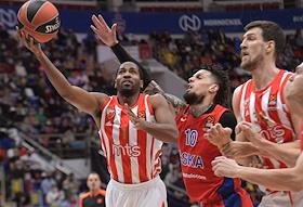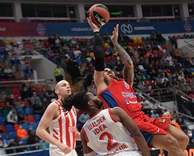 Евролига по баскетболу. Матч между командами ЦСКА (Москва, Россия) - "Црвена Звезда" (Белград, Сербия) во Дворце спорта "Мегаспорт". Игрок команды ЦСКА Уилл Клайберн (в центре) во время матча.