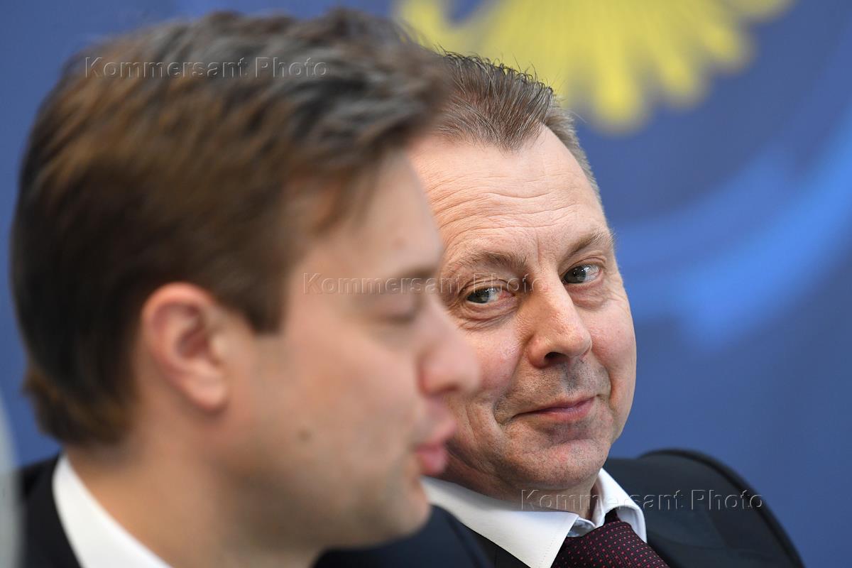 Первое заседание Центральной избирательной комиссии (ЦИК) России нового состава. Председатель Центрального комитета партии "Коммунисты России" Максим Сурайкин (слева) перед началом заседания.