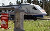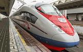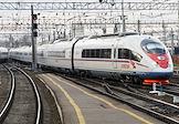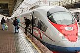Скоростной поезд "Сапсан" у платформы на вокзале в Санкт-Петербурге.