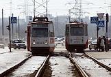 Жанровая фотография. Городские трамваи во время движения по маршруту.