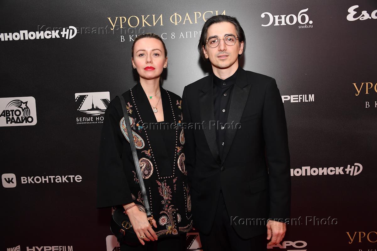 Премьера фильма Вадима Перельмана "Уроки фарси" в кинотеатре "КАРО 11 Октябрь". Продюсеры Мурад Османн с супругой телеведущей Натальей Османн на премьере.
