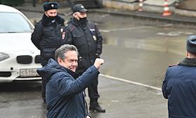Заседание по делу лидера движения "За новый социализм" Николая Платошкина, обвиняемого в склонении к массовым беспорядка, в Басманном районном суде. Лидер движения "За новый социализм" Николай Платошкин после заседания суда.