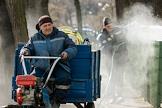 Виды Санкт-Петербурга. Жанровая фотография. Сотрудники парковой службы Летнего сада отмывают ограду.