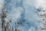Экологический праздник "Скворцы прилетели", посвященный Международному дню птиц, в Летнем саду. Гусиный клин в небе над Летним садом.