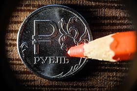 Жанровая фотография. Деньги. Монета достоинством один (1) рубль и красный карандаш.