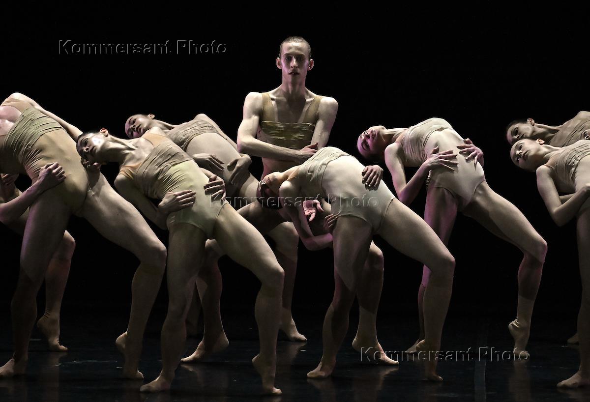 Программа одноактных балетов, состоящая из возобновления "Кончерто барокко" Джорджа Баланчина и российских премьер балетов Autodance Шарон Эяль и KAASH Акрама Хана на сцене Музыкального театра имени К.С.Станиславского и В.И.Немировича-Данченко. Танцор георги Смилевски (в центре) во время исполнения "Кончерто барокко".