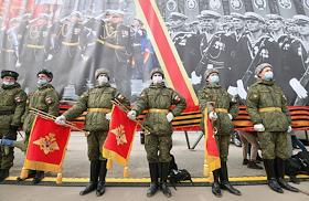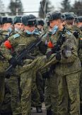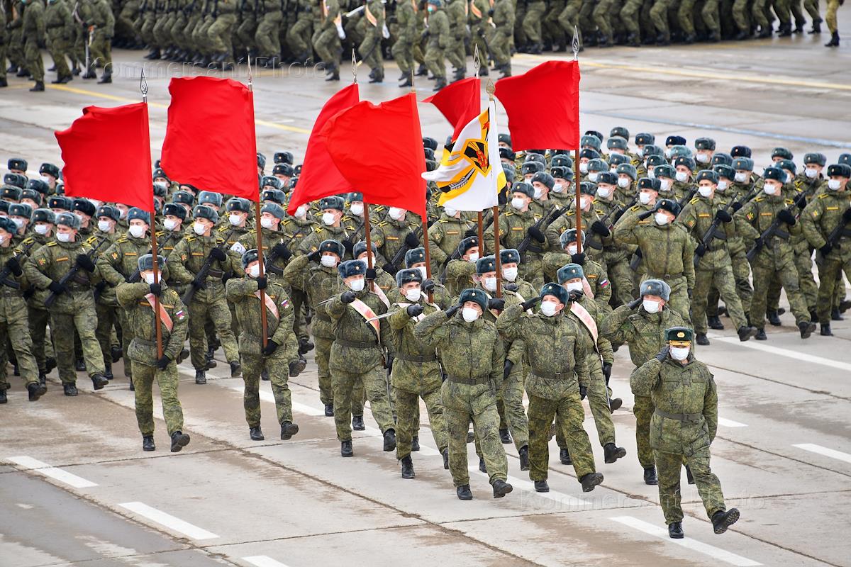 Первая совместная репетиция парадных расчетов, экипажей военной техники и авиационных экипажей Парада Победы 9 мая 2021 года на Красной площади. Военнослужащие во время репетиции на полигоне "Алабино".