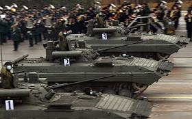 Первая совместная репетиция парадных расчетов, экипажей военной техники и авиационных экипажей Парада Победы 9 мая 2021 года на Красной площади на полигоне "Алабино". Боевая машина пехоты БМП-3 во время репетиции.