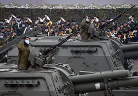 Первая совместная репетиция парадных расчетов, экипажей военной техники и авиационных экипажей Парада Победы 9 мая 2021 года на Красной площади на полигоне "Алабино". Военная техника во время репетиции.