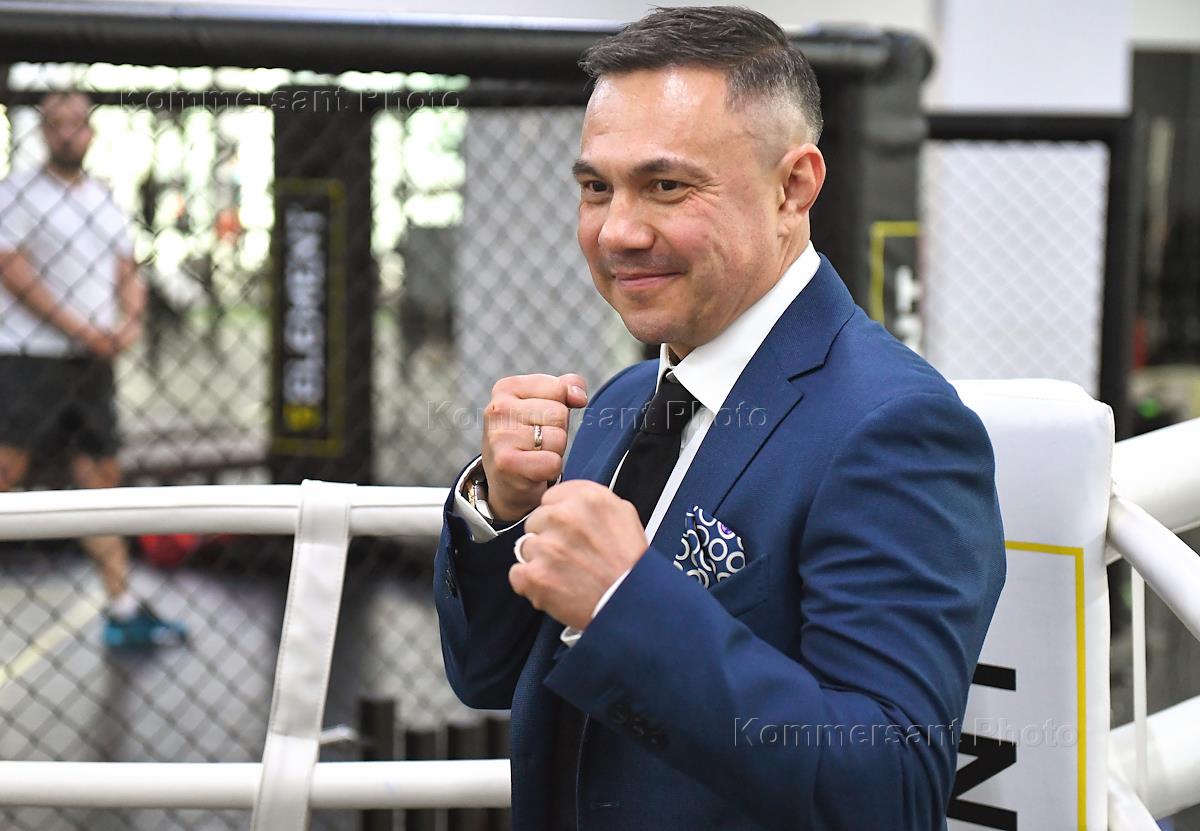 Боксер Костя Цзю на презентации своей программы по боксу в фитнес-центре "5 Element" в ТЦ "Афимолл".