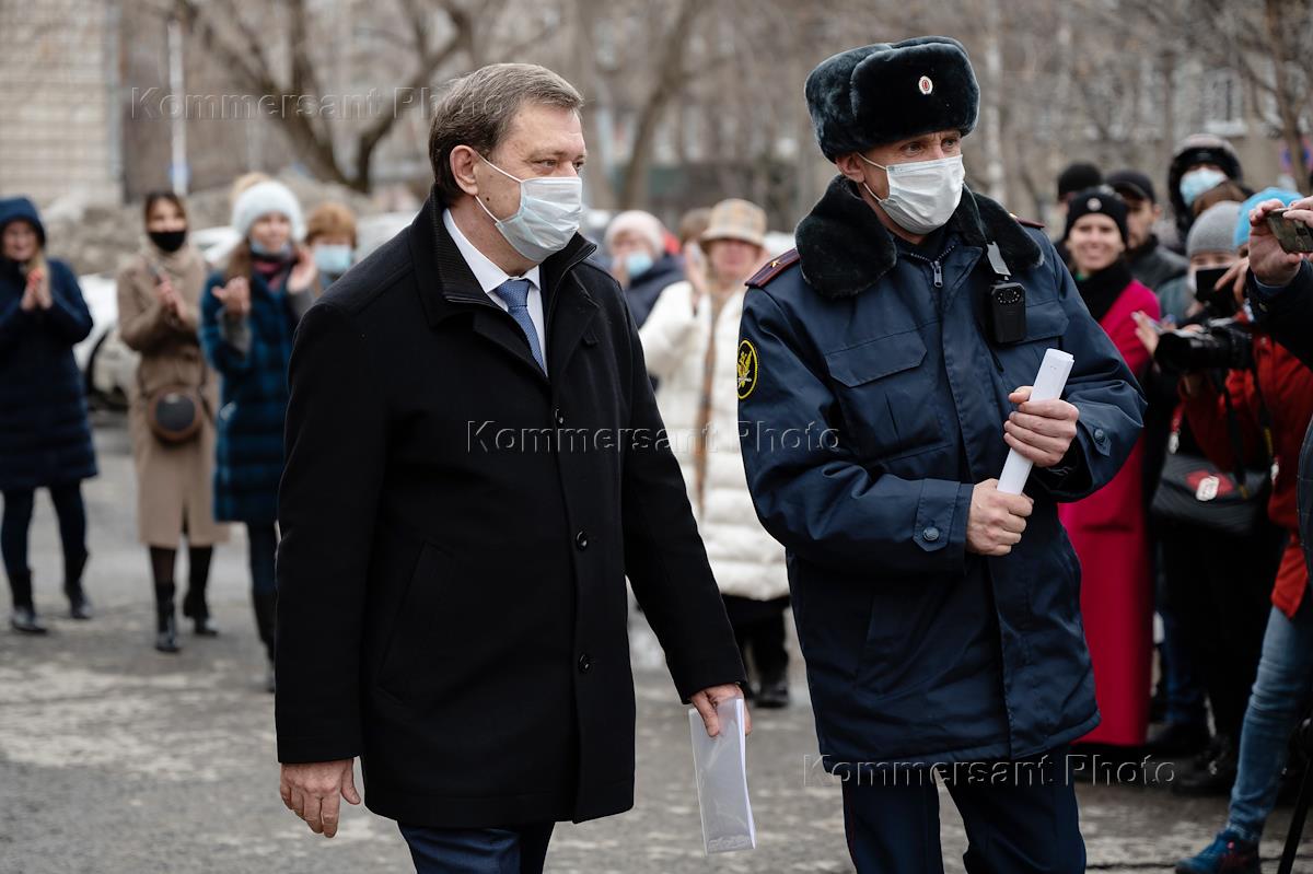 Глава (мэр) Томска Иван Кляйн, обвиняемый в превышении полномочий и незаконном предпринимательстве, после окончания заседания Советского районного суда.