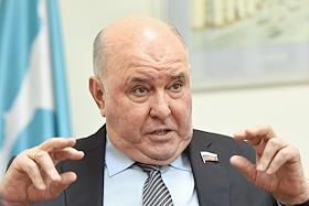 Председатель комитета Совета Федерации России по международным делам Григорий Карасин во время интервью в Совете Федерации России.