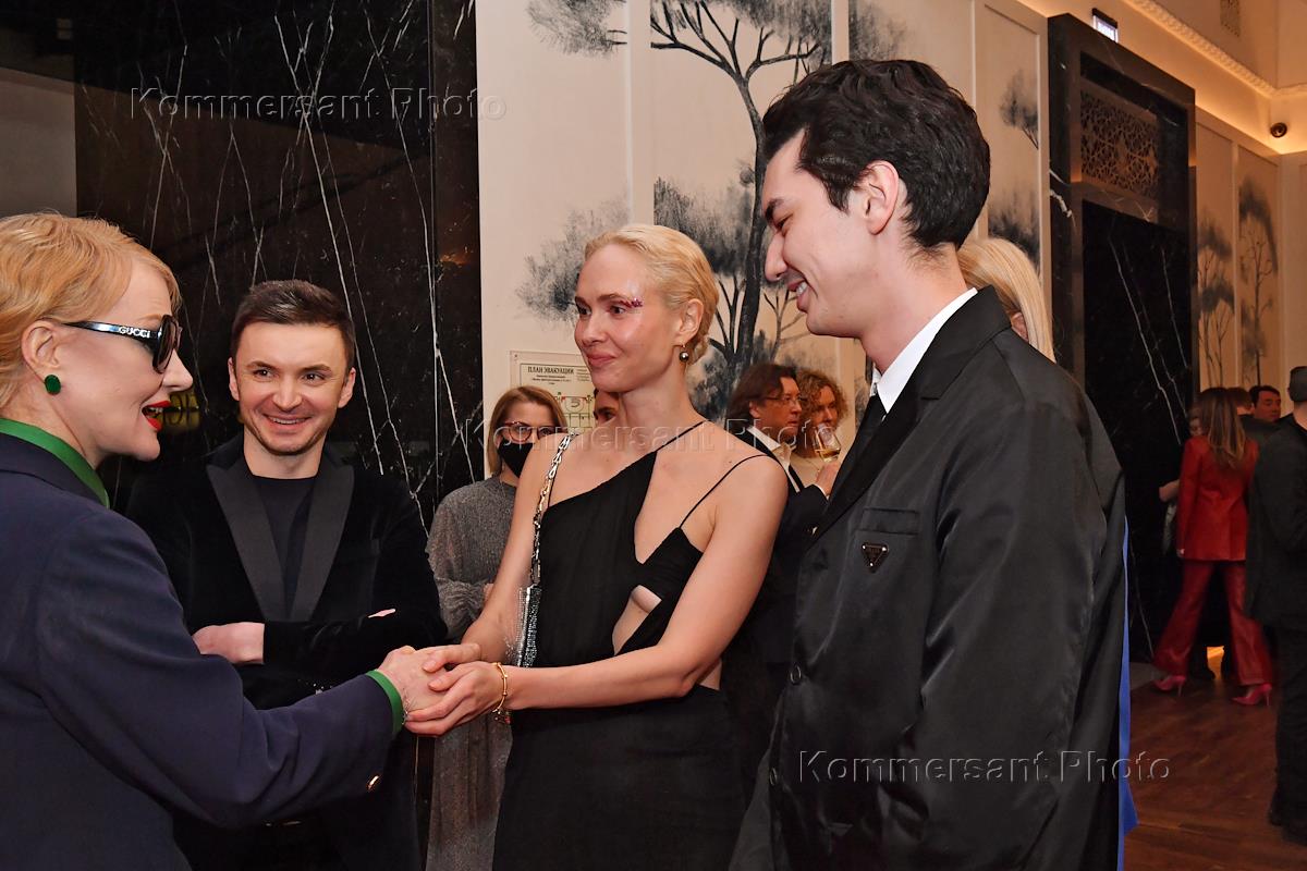 Церемония открытия кинотеатра "Художественный" после реконструкции и премьера фильма "Отец" Флориана Зеллера. Слева направо: актеры Анна Шевчук, Юрий Борисов и Никита Еленев во время церемонии.