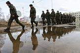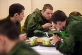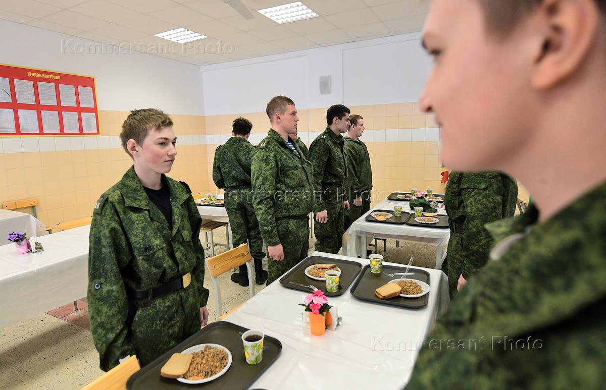 День открытых дверей в воинской части в 56-м гвардейском центре подготовки младших специалистов мотострелковых войск в Сертолово. Призывники во время ознакомительной экскурсии с целью демонстрации условий прохождения военной службы.