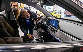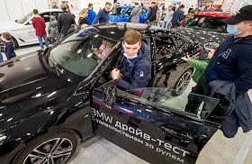 Петербургский Международный Автосалон 2021 в выставочном павильоне "Экспофорум". Посетители на автосалоне.