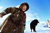 Ненецкие оленеводы Полярного Урала. Жанровая фотография. Оленеводы на зимнем стойбище. Ребенок на снегоходе.