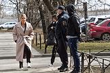 Рассмотрение уголовного дела в отношении юриста Фонда борьбы с коррупцией Любови Соболь, обвиняемой в незаконном проникновении в квартиру тещи сотрудника ФСБ Константина Кудрявцева, в Перовском районном суде. Ситуация у суда. Сотрудники правоохранительных органов проверяют документы у входящих.