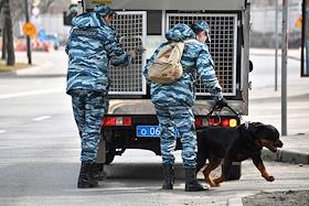 Рассмотрение уголовного дела в отношении юриста Фонда борьбы с коррупцией Любови Соболь, обвиняемой в незаконном проникновении в квартиру тещи сотрудника ФСБ Константина Кудрявцева, в Перовском районном суде. Ситуация у суда. Сотрудники кинологической службы полиции у здания суда.