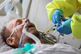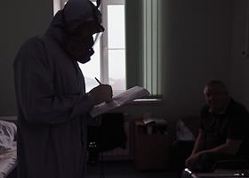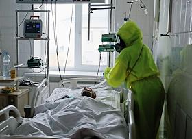 Больница скорой медицинской помощи №7. Палата в "красной зоне", где лежат пациенты инфицированные коронавирусной инфекцией COVID-19. Жанровая фотография.