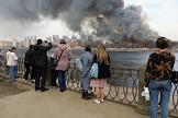 Пожар в здании Невской мануфактуры на Октябрьской набережной в Санкт-Петербурге.