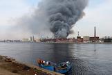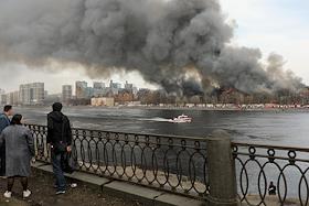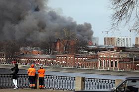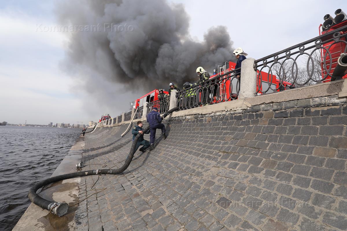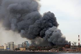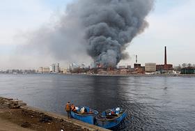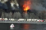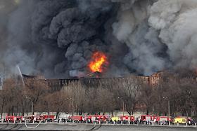 Пожар в здании Невской мануфактуры на Октябрьской набережной в Санкт-Петербурге.
