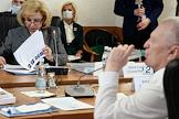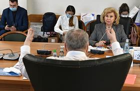 Встреча депутатов фракции Либерально-демократической партии (ЛДПР) Государственной думы (ГД) России с уполномоченным по правам человека в России Татьяной Москальковой в ГД России. Лидер Либерально-демократической партии России (ЛДПР) Владимир Жириновский (спиной) и уполномоченный по правам человека в России Татьяна Москалькова (в центре) во время встречи.