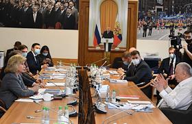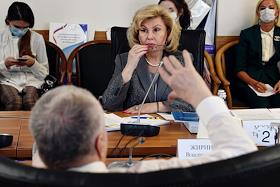 Встреча депутатов фракции Либерально-демократической партии (ЛДПР) Государственной думы (ГД) России с уполномоченным по правам человека в России Татьяной Москальковой в ГД России. Лидер Либерально-демократической партии России (ЛДПР) Владимир Жириновский (справа) и уполномоченный по правам человека в России Татьяна Москалькова (вторая слева) во время встречи.
