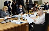 Встреча депутатов фракции Либерально-демократической партии (ЛДПР) Государственной думы (ГД) России с уполномоченным по правам человека в России Татьяной Москальковой в ГД России. Лидер Либерально-демократической партии России (ЛДПР) Владимир Жириновский (справа) и уполномоченный по правам человека в России Татьяна Москалькова (третья слева) во время встречи.