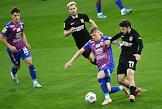 Российская Премьер-Лига (РПЛ). Тинькофф - Чемпионат России по футболу 2020/2021. 25-й тур. Матч между командами ЦСКА (Москва) - "Ротор" (Волгоград) на стадионе "ВЭБ Арена". Слева направо: игрок команды ЦСКА Никола Влашич, игроки команды "Ротор" Андрес Понсе и Илья Жигулёв во время матча.