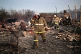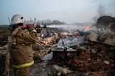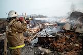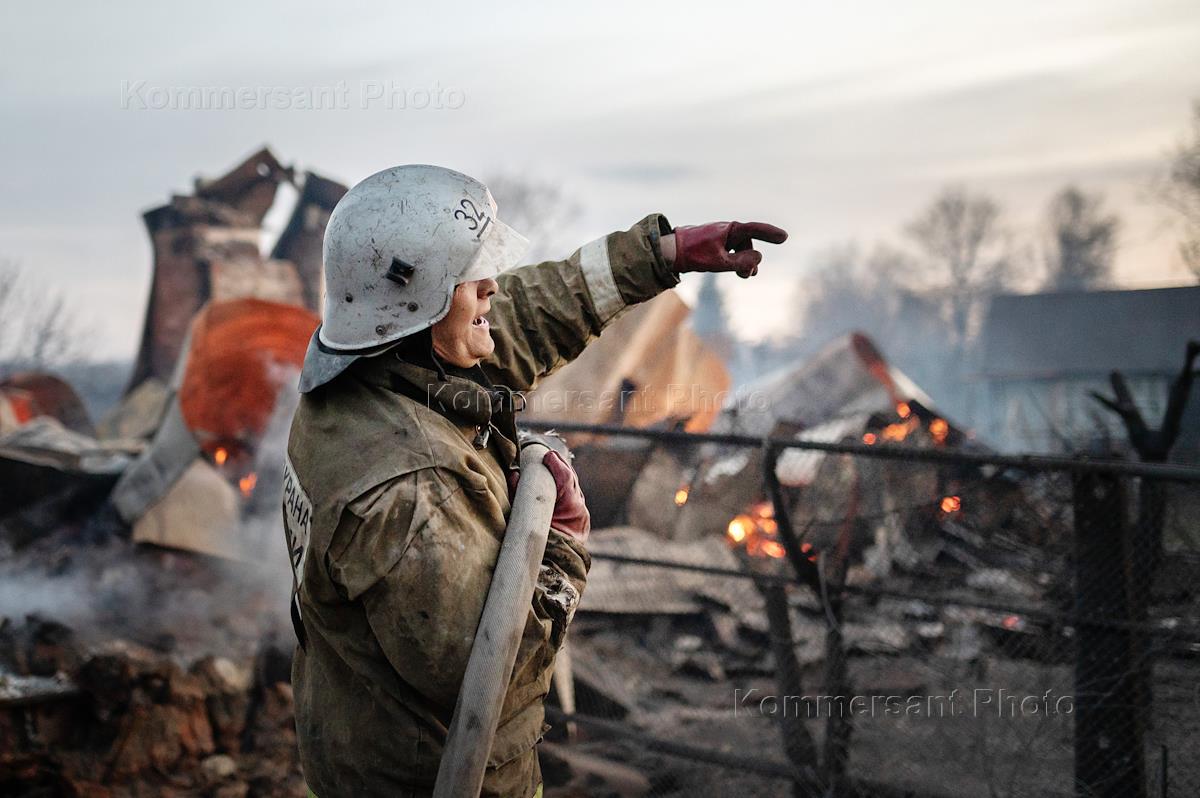 Жанровая фотография. Сотрудники МЧС России во время тушения пожара в селе Мечетка Бобровского района Воронежской области.