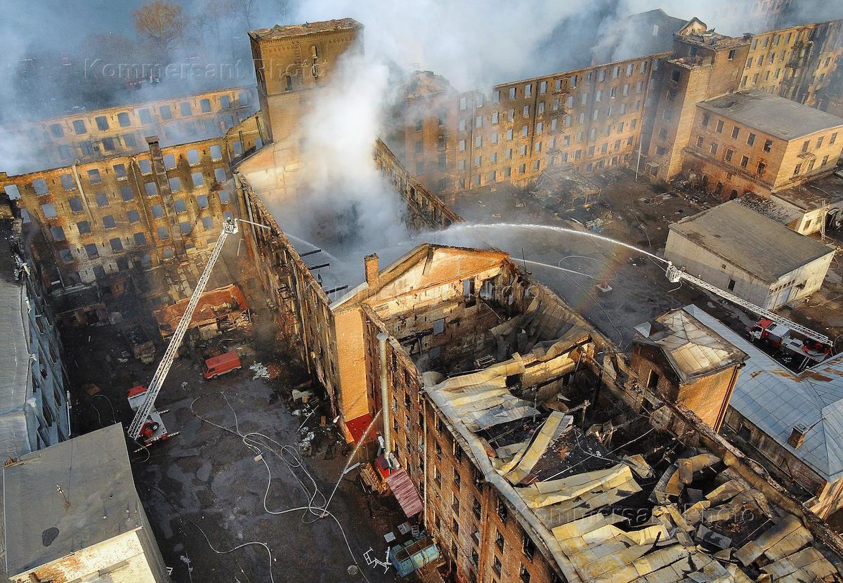 Последствия пожара в здании "Невская мануфактура" на Октябрьской набережной.