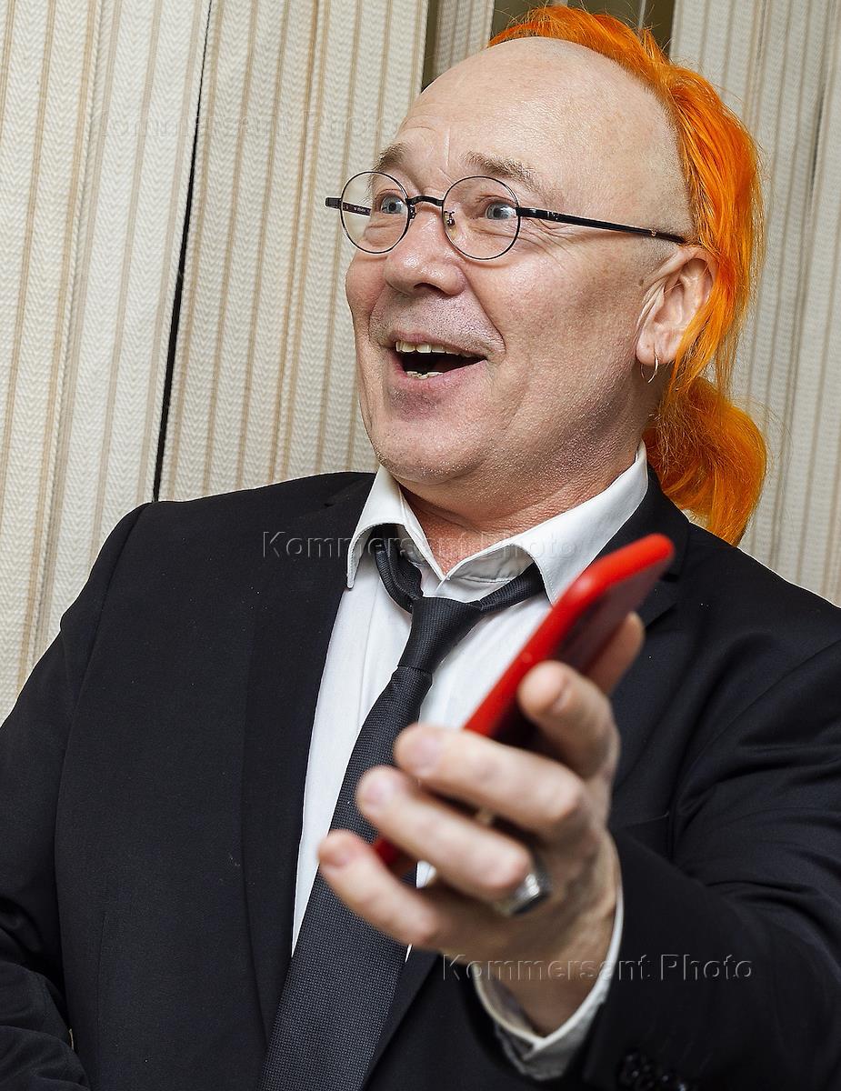 Юбилейный вечер "Юрия Гальцева. Космический юбилей", посвященный 60-летию художественному руководителю Театра Эстрады имени А.И. Райкина Юрию Гальцеву на сцене Театре Эстрады имени А.И.Райкина. Артист театра "Лицедеи" Леонид Лейкин во время юбилейного вечера.