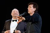 Юбилейный вечер "Юрия Гальцева. Космический юбилей", посвященный 60-летию художественному руководителю Театра Эстрады имени А.И. Райкина Юрию Гальцеву на сцене Театре Эстрады имени А.И.Райкина. Артист, художественный руководитель Театра Эстрады имени А.И. Райкина Юрий Гальцев (слева) и артист эстрады Геннадий Ветров (справа) во время юбилейного вечера.
