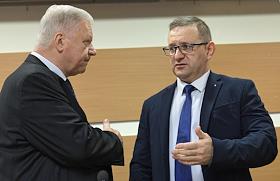 Заседание Генерального Совета Федерации независимых профсоюзов России (ФНПР) в гостиничном комплексе "Измайлово". Председатель ФНПР Михаил Шмаков (справа) и председатель Пенсионного фонда России Андрей Кигим (слева) перед началом заседания .