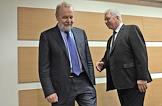 Заседание Генерального Совета Федерации независимых профсоюзов России (ФНПР) в гостиничном комплексе "Измайлово". Председатель ФНПР Михаил Шмаков (слева) и заместитель председателя ФНПР Александр Шершуков (справа) перед началом заседания.