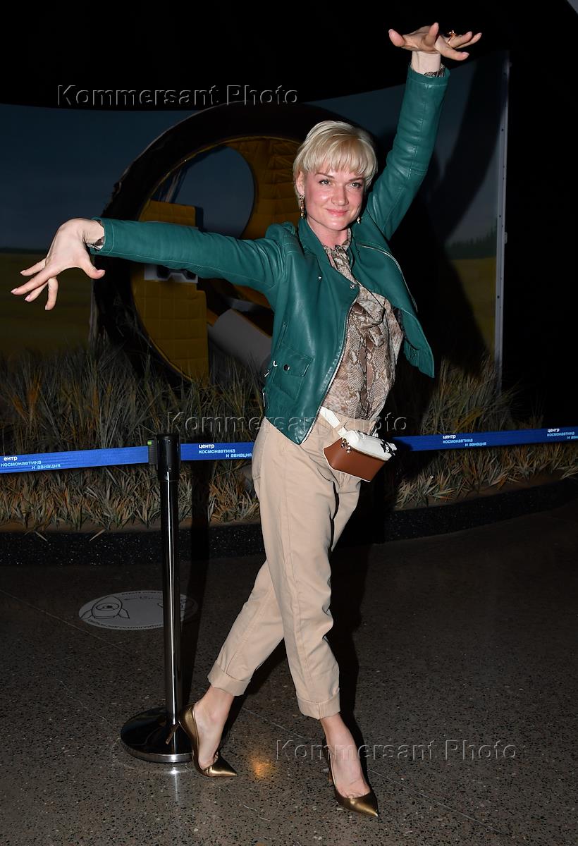 Презентация коллекции экипировки для спортсменов сборной России бренда ZASPORT к XXXII Олимпийским летним играм в Токио. Презентация прошла в центре "Космонавтика и авиация" на ВДНХ. Актриса Агата Муцениеце (слева) во время презентации.