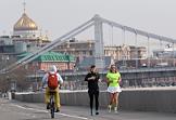 Жанровая фотография. Весна в Москве. Девушки во время пробежки по Крымскому мосту.