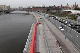 Виды Москвы. Автомобильное движение на Москворецкой набережной.