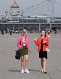 Жанровая фотография. Весна в Москве. Девушки во время прогулки по набережной Москвы-реки.