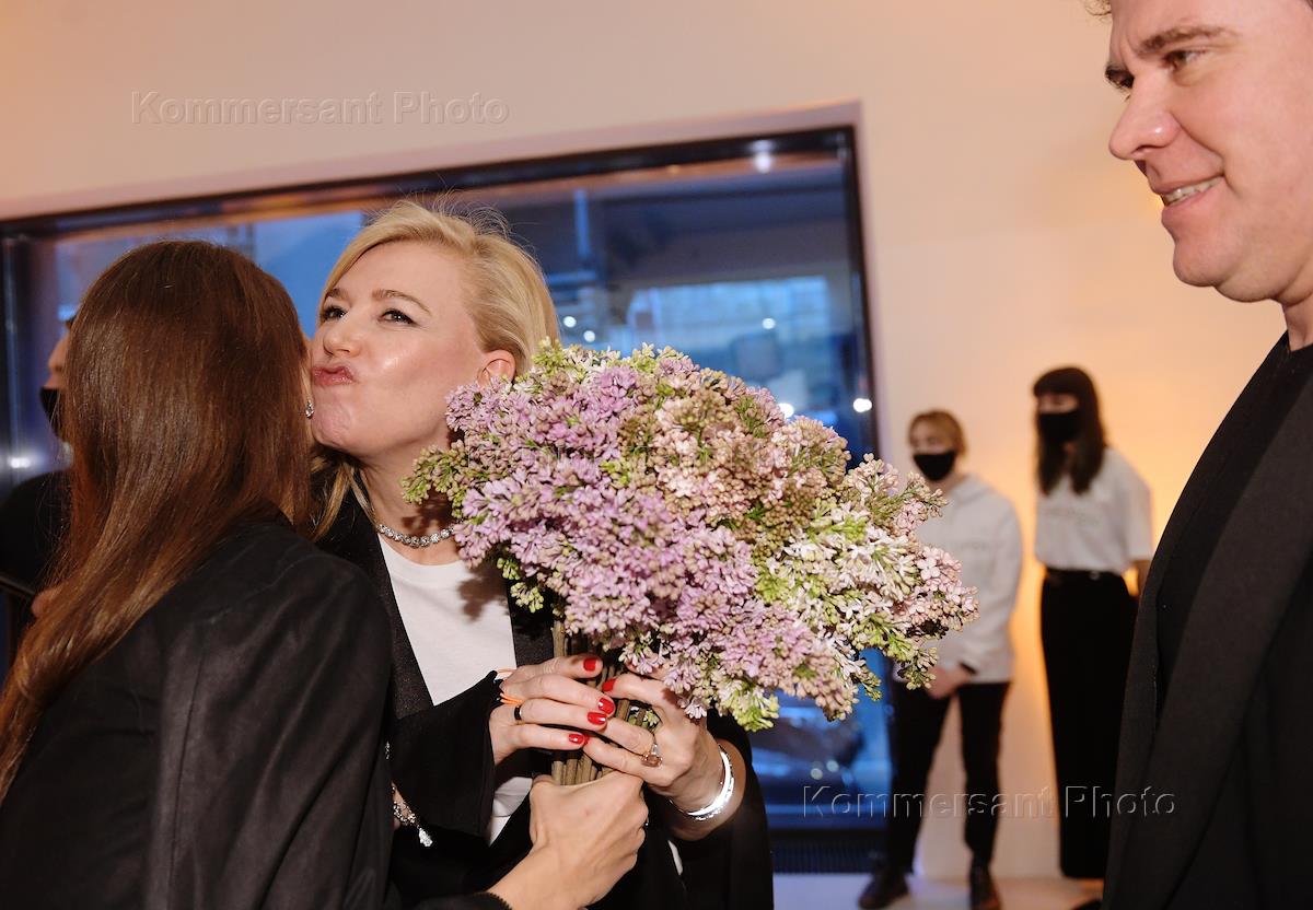Церемония открытия нового пространства Фонда современного искусства Ruarts. Телеведущая Ирада Зей1налова (справа) и общественный деятель, писатель Ирина Хакамада (в центре) во время церемонии.