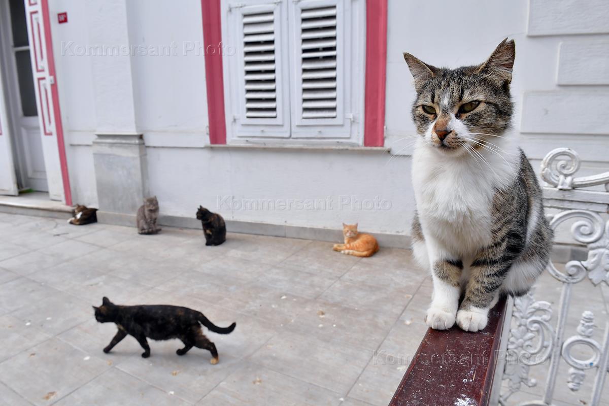 Виды Стамбула. Жанровая фотография. Кот спит на парапете.