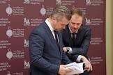 Заседание Общественного совета проекта ВПП "Единая Россия" "Историческая память" в Доме Российского исторического общества. Слева направо: председатель комитета Государственной думы России по информационной политике, информационным технологиям и связи Александр Хинштейн, председатель Правления Российского исторического общества, исполнительный директор фонда "История Отечества" Константин Могилевский, председатель Российского исторического общества Сергей Нарышкин и первый заместитель министра культуры России Сергей Обрывалин перед началом заседания.