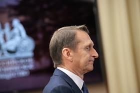 Председатель Российского исторического общества Сергей Нарышкин перед началом заседания Общественного совета проекта партии "Единая Россия" "Историческая память". Заседание прошло в Доме Российского исторического общества.