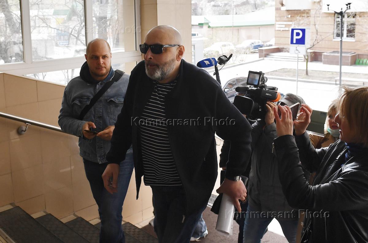 Свидетель Теван Бадасян (в центре), обвиняемый в даче заведомо ложных показаний по делу актера Михаила Ефремова о дорожно-транспортном происшествии со смертельным исходом, перед началом заседания Пресненского районного суда.