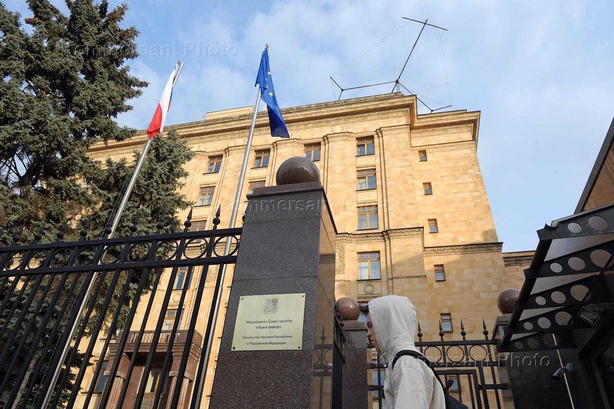 Виды Москвы. Здание посольства Чешской Республики. Флаги Чехии и Евросоюза.