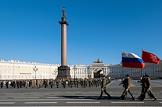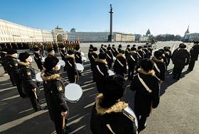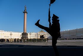 Репетиция военного парада в ознаменование 76-й годовщины Победы в Великой Отечественной войне прошла на Дворцовой площади.